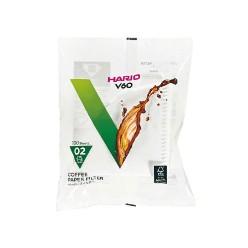 100 filtros de papel cónicos para elaborar café de forma manual con gotero o dripper Hario 02, método V60.
