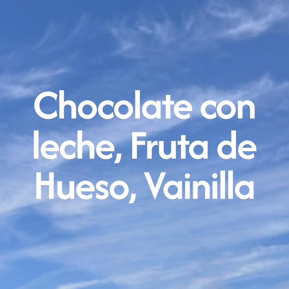 Fruta de hueso, vainilla y chocolate con leche.